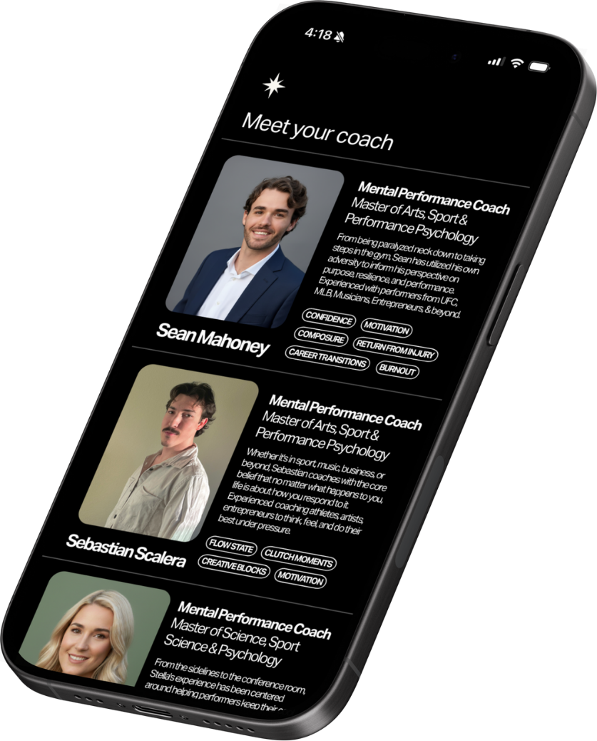Meet 1:1 with your Mental Performance Coach, access mental training 24/7, and join live group sessions all in the Northstar app.